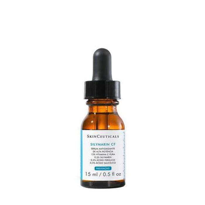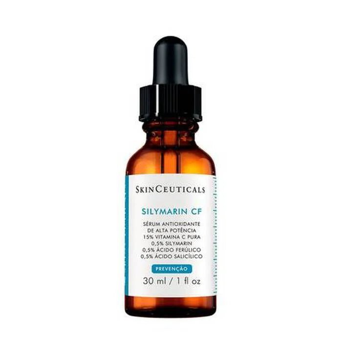 Silymarin CF é um sérum de vitamina C inovador para pele oleosa e com tendência acne que combina sinérgica de 0,5% de silimarina, 15% de ácido l-ascórbico, 0,5% de ácido ferúlico e 0,5% de ácido salicílico.